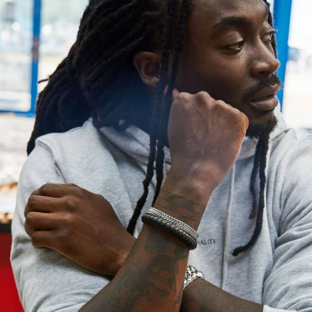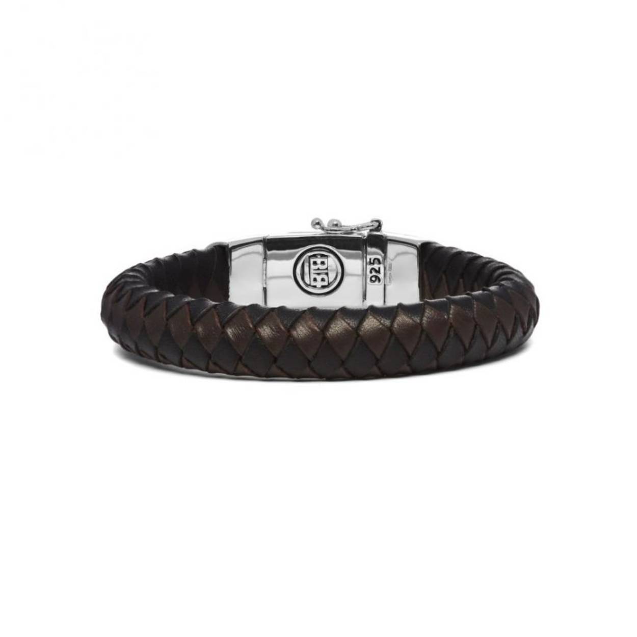Lederen armband mix bruin/zwart leder met zilveren sluiting