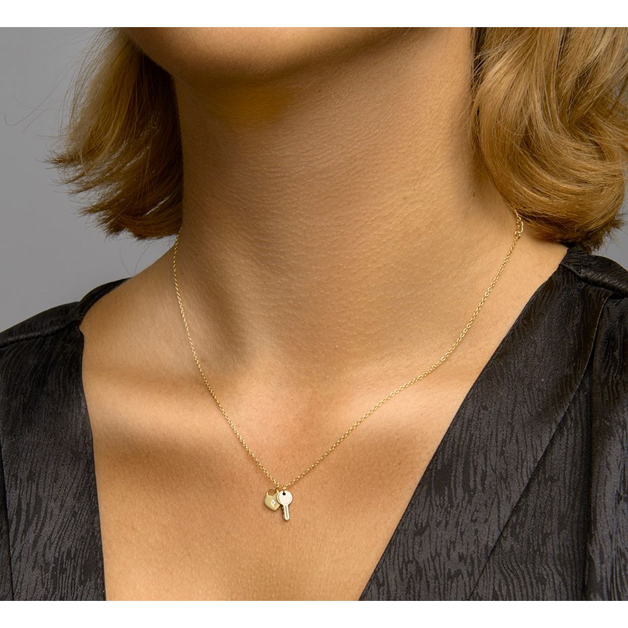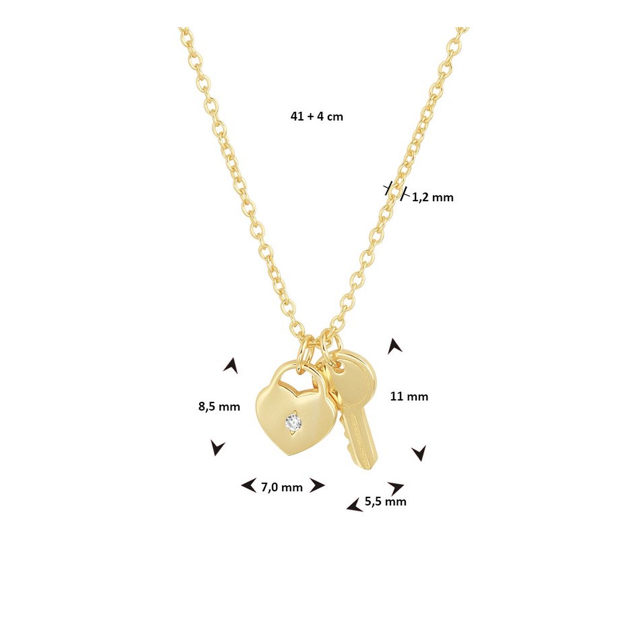 Geelgoud op 925 zilveren collier uitgevoerd met een hart en een sleutel. Het collier heeft een draaglengte van 41cm met een extensie van 4cm en een stevige karabijn sluiting.