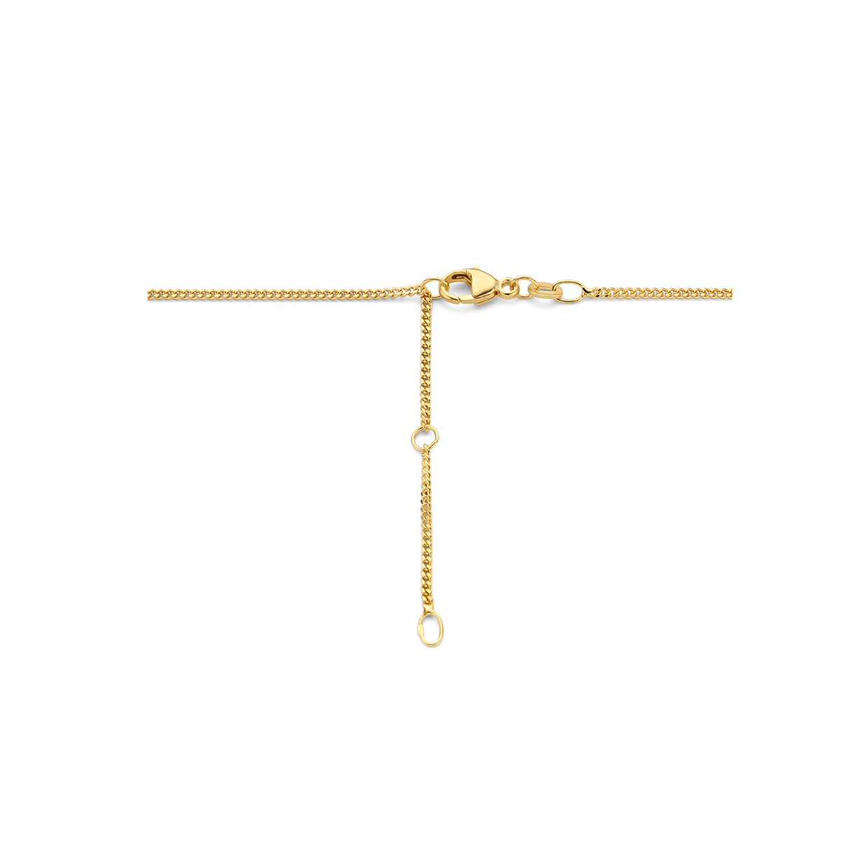 14k Bicolor geel- en witgouden hanger uitgevoerd met een diamant rij. De hanger heeft een totale hoogte van 11.5mm. Mooi met de bijpassende creolen en ring.