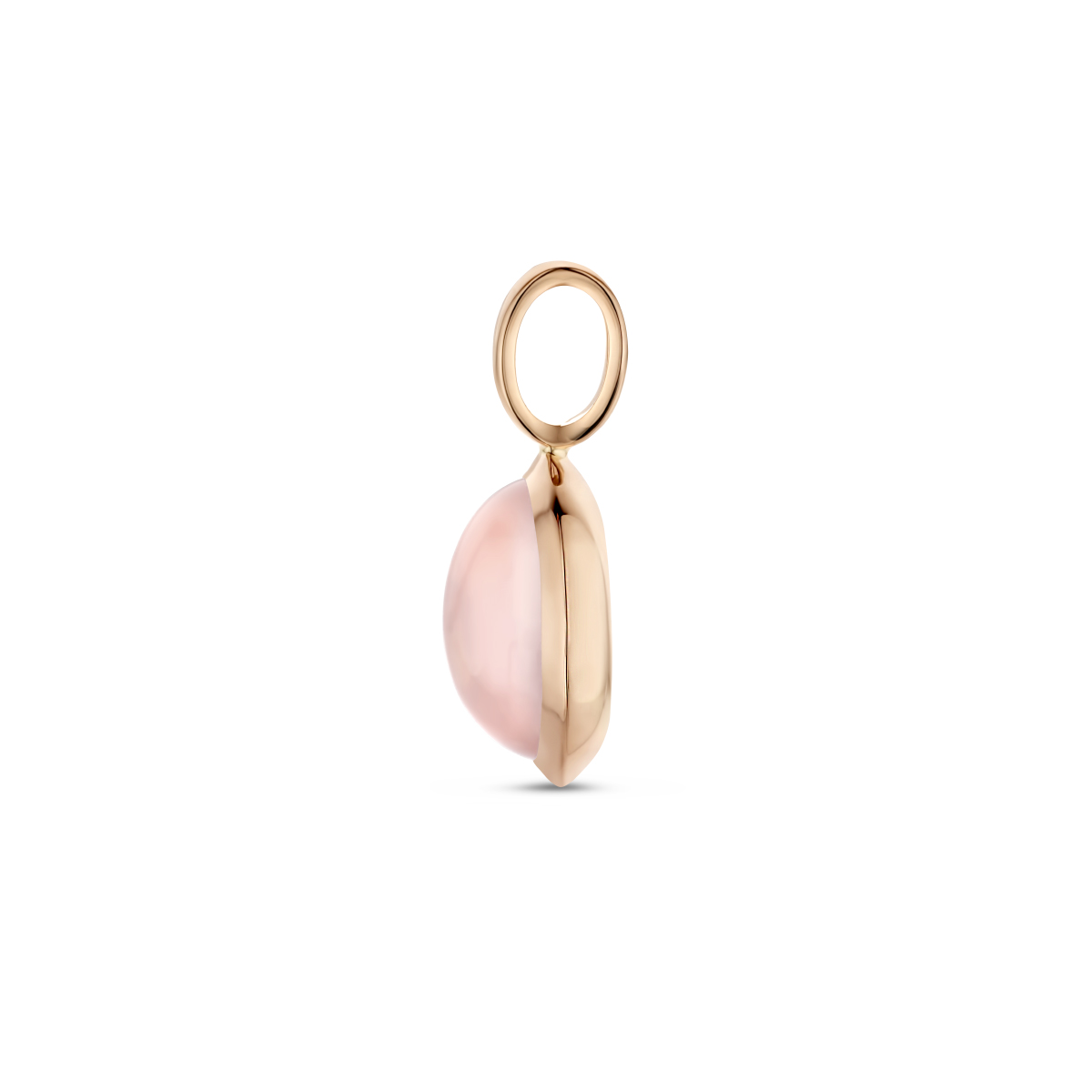 14k Rosegouden hanger uitgevoerd met schitterende roze kwarts. De hanger heeft een afmeting van 18.5x9.5mm.