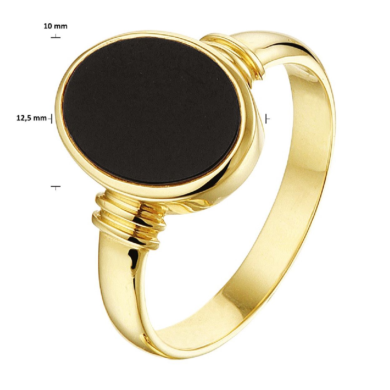 De ring is gemaakt van geelgoud en is zwartkleurig. Het is een sieraad voor dames.