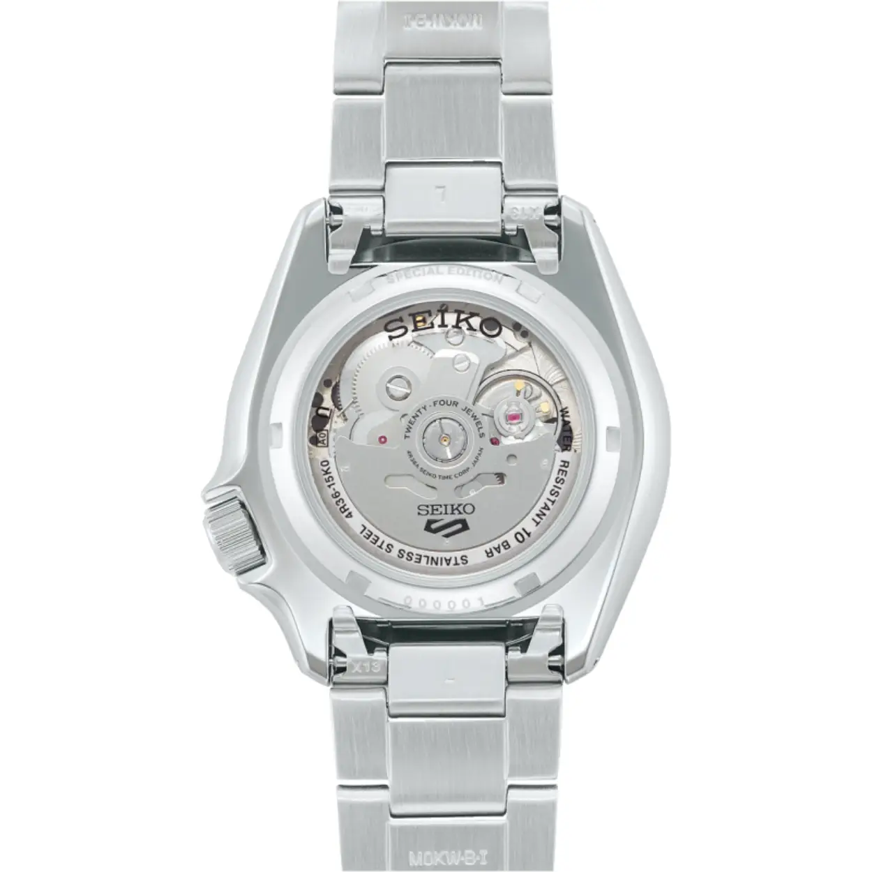 Dit is een herenhorloge van het merk Seiko. Het is een analoog horloge gemaakt van staal. De diameter van de kast is 42.5 mm en de kast is 13.9 mm dik.