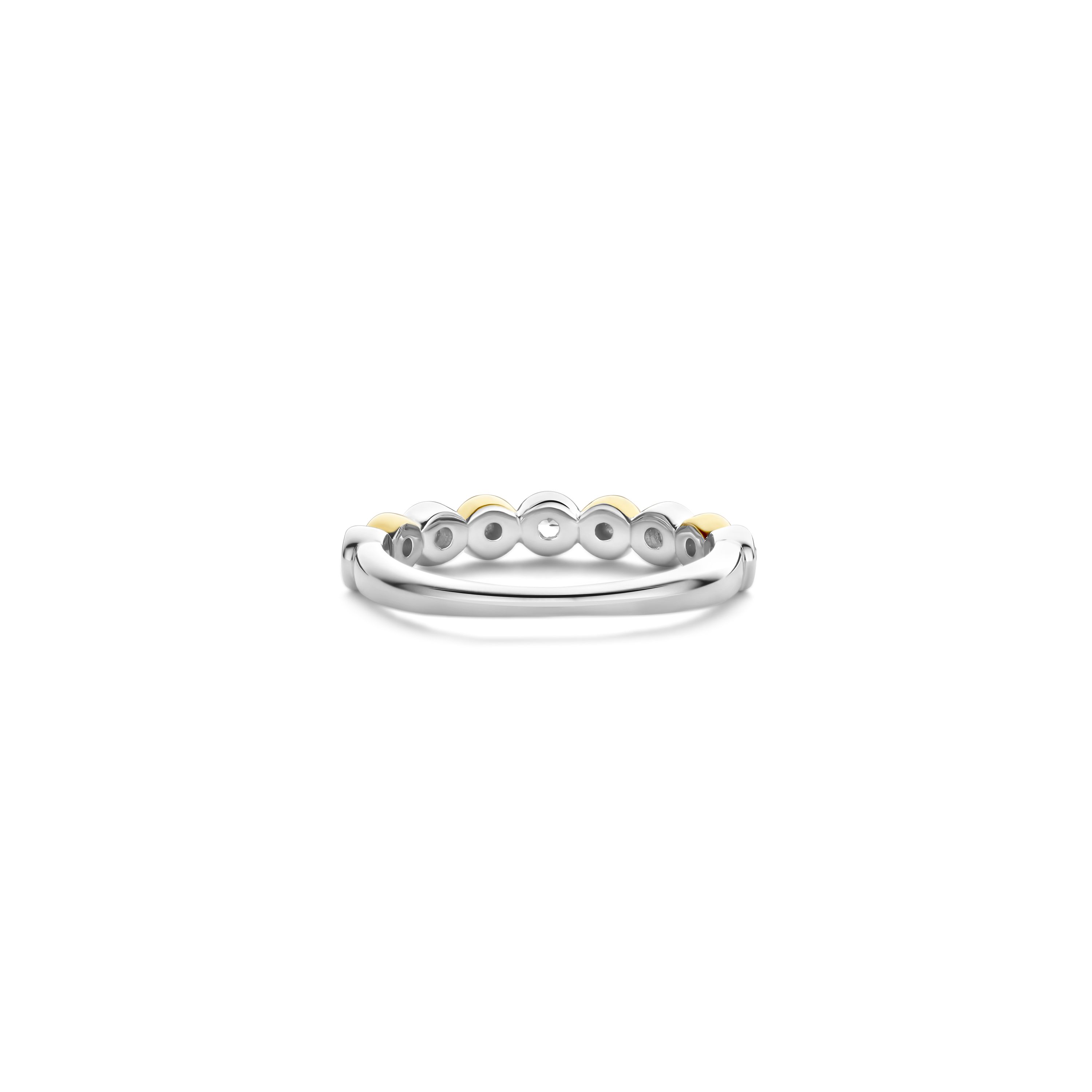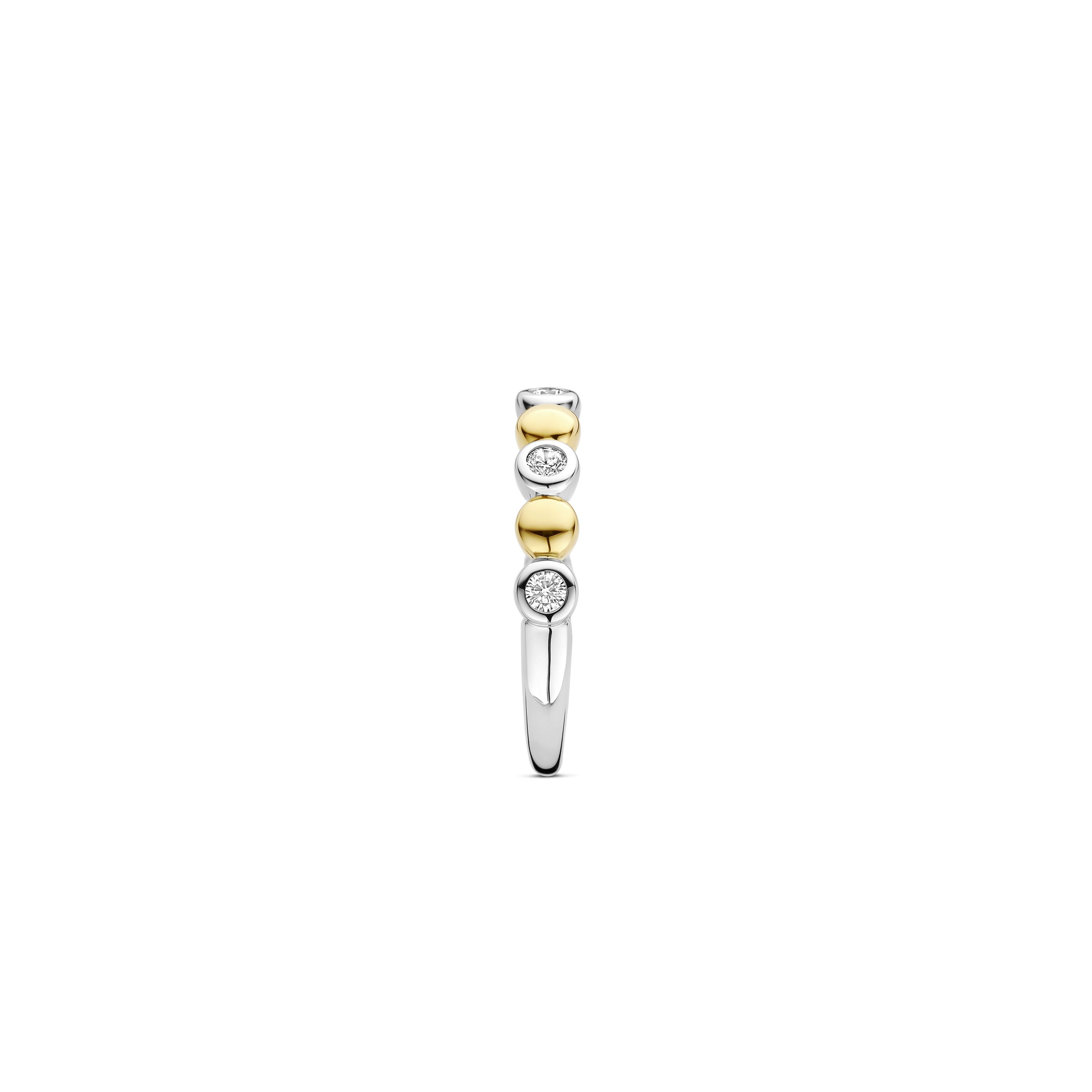 Met deze TI SENTO goudkleurige ring 12365ZY vier je de kunst van contrast. Een moderne klassieker met een stralende twist. Vervaardigd uit hoogwaardig 925 zilver heeft deze ring een opvallende rij bezelgezette zirkonia stenen die afwisselen met gepolijste vergulde bolletjes.