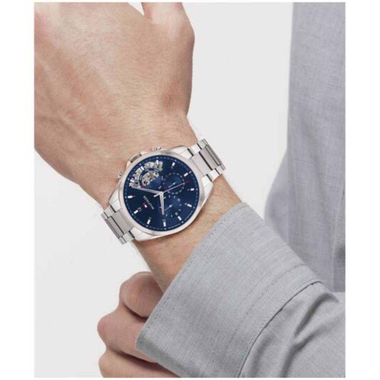 Dit is een herenhorloge van het merk Tommy Hilfiger uit de serie BAKER. Met een horlogekast gemaakt van staal en een zilverkleurige band van staal.