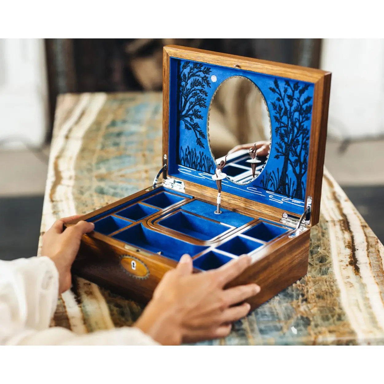 Wolf Ballet Musical Jewellery Box - Walnut Wood, Zwanenmeer
